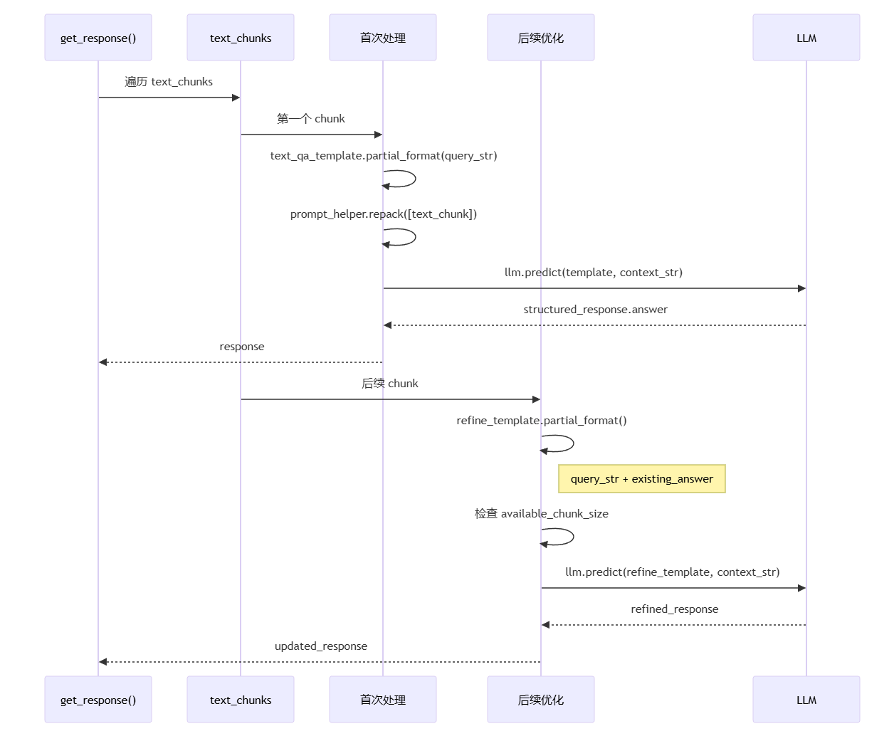 后续 chunk 调用优化逻辑,使用 refine_template 逐步改进答案