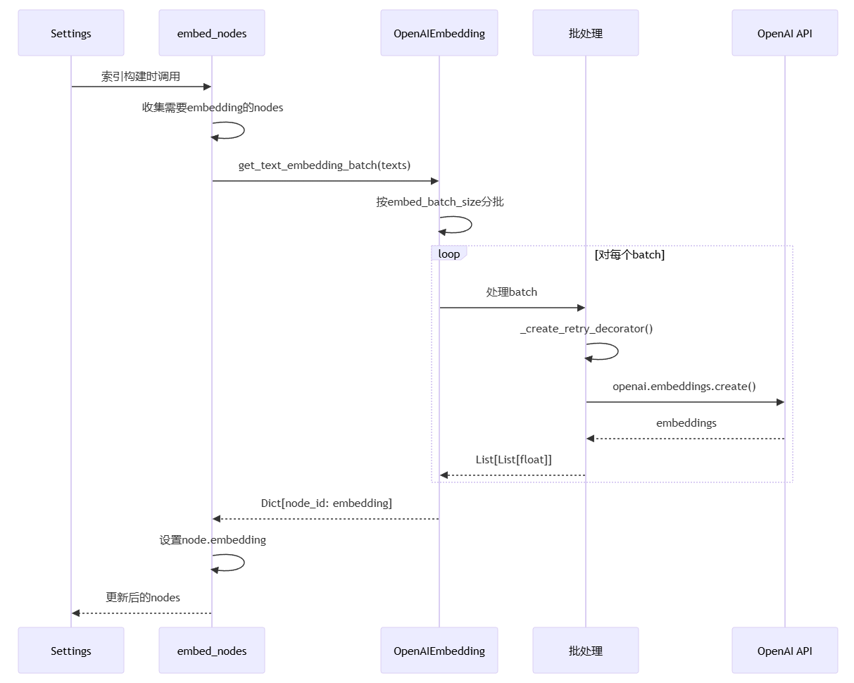 调用 OpenAIEmbedding.get_text_embedding_batch(),批量生成向量